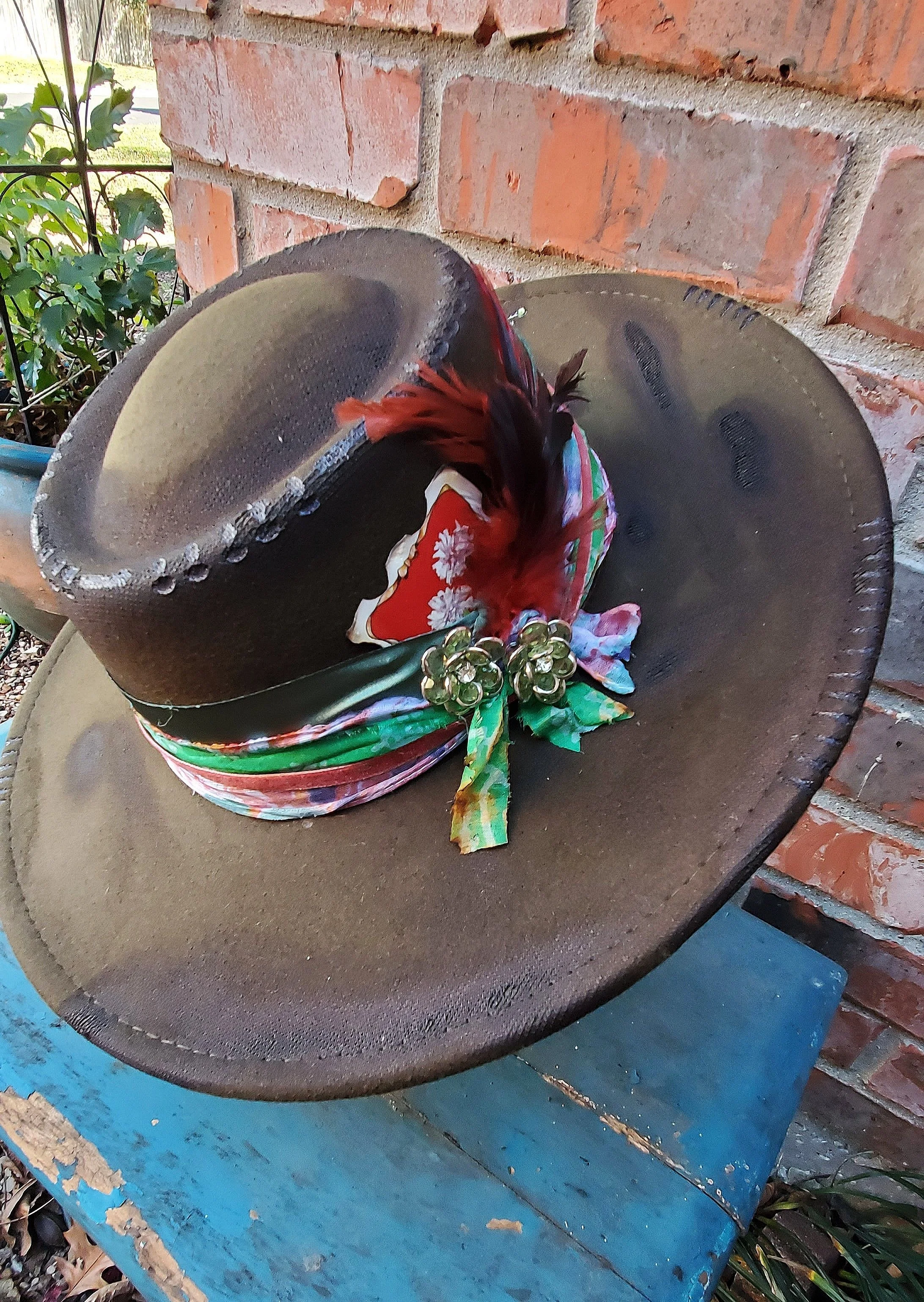 Pre-Designed Hats Categories: All Items HATS All Items | HATS | Roses All Day $95.00 Pretty in Purple $116.00 Highway Roadster $90.00 Casual Mae Rancher $75.00 Wine Cheetah Rancher $110.00 Rancher Style Leather Flower $97.00 3D Floral $105.00 Flaming Sunflower $90.00 Cowboy Billy $90.00 Barbed Wire Around Rancher $90.00 Purple Paisley Fancy Rancher $95.00 Cowhide Arrowhead Crown NB $122.00 BBC-SUNFLOWER LOVE $32.00 BBCCHOC- DEAR ROAM $32.00 Don't Paisley Around-Boater Style Hat Sale Price: $75.00 Original Price: $110.00 Sold Out Packing Power-Pencil Brim Hat Sale Price: $75.00 Original Price: $110.00 Sale Gracie Gray-Fedora Hat Sale Price: $75.00 Original Price: $110.00 Sale Flash Flow-Boater Style Hat Sale Price: $75.00 Original Price: $110.00 Sale Jaded Rancher-Pencil Brim Hat Sale Price: $85.00 Original Price: $110.00 Sale Mountain landscape ball cap $25.00